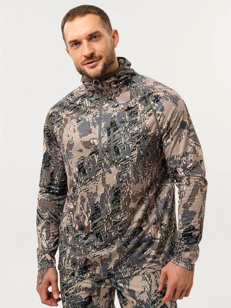 Лонгслив с длинными рукавами Remington Foliage Anti-mosquito Figure изготовлен из терморегулирующей, быстросохнущей и высокоэластичной ткани, обеспечивающей комфорт и свободу движений в любых условиях. Пропитка Insect Protection отпугивает комаров, мошек и клещей, снижая риск укусов. Удобный капюшон и встроенная маска обеспечивают надёжную маскировку и защиту от ультрафиолетовых лучей, делая модель идеальной для длительных выходов на природу.