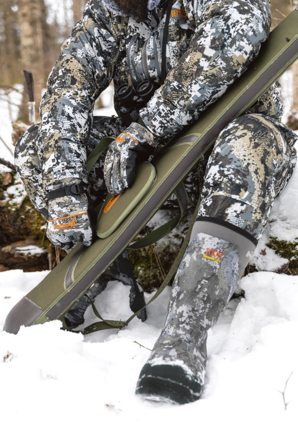 Комбинация резины, 5 мм неопрена и утеплителя Thinsulate 1600 g надёжно защищает от холода при температуре до -25 °C. Благодаря специальному протектору подошва обеспечивает устойчивость на снегу и вязком грунте. Регулируемая утяжка по голени фиксирует сапоги на ноге, предотвращая попадание снега.